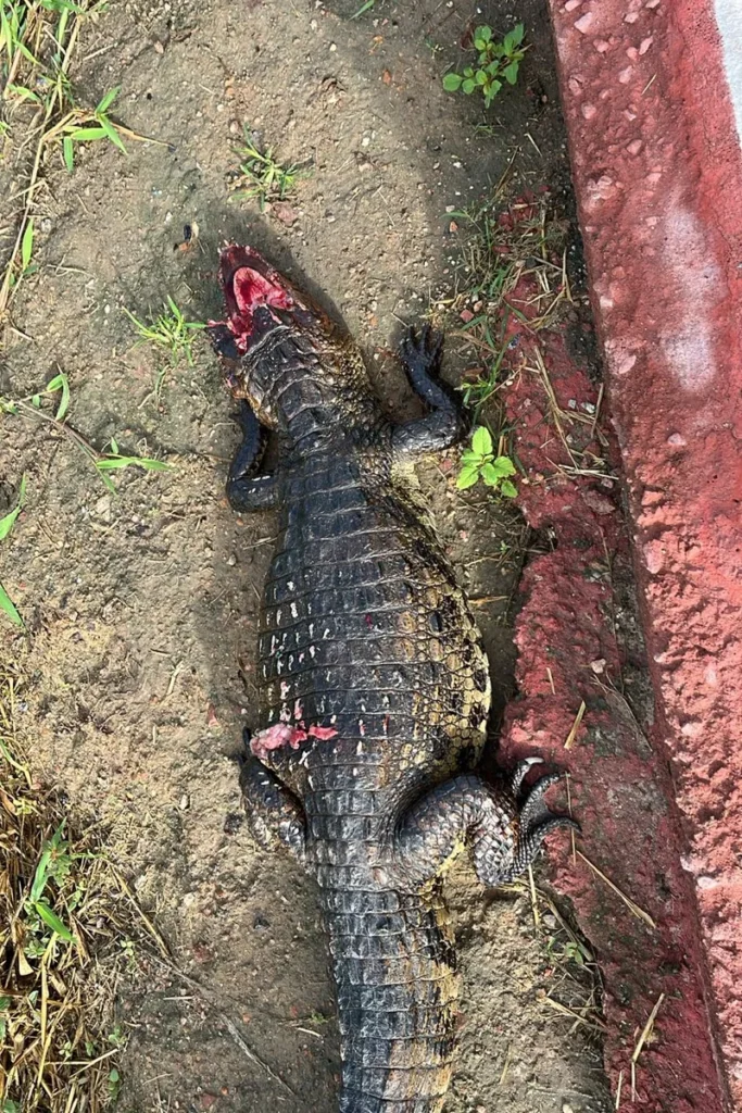 Jacaré é encontrado sem vida às margens de riacho em Arapiraca após aparição na noite anterior